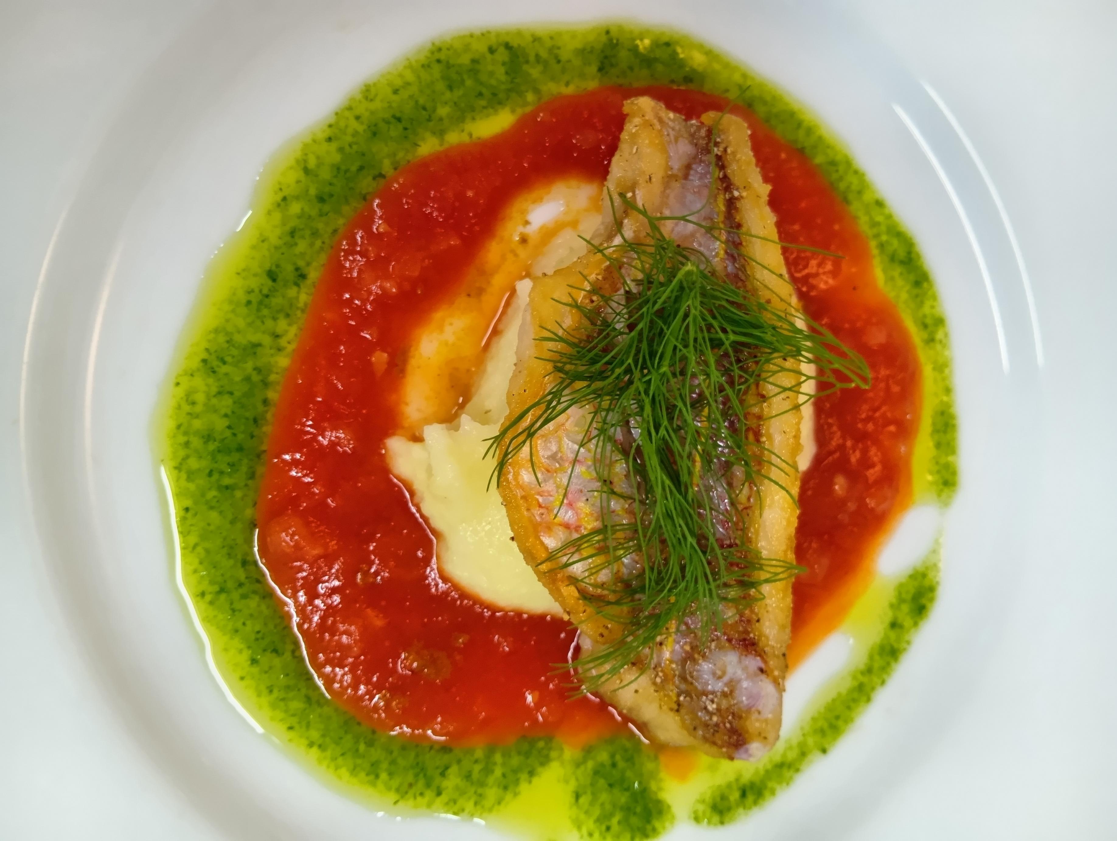 イトヨリダイ、ニンニク風味ポテトピューレ